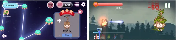 장애물을 피해 캐릭터의 공격력과 스킬을 높일 수 있는 재화를 획득하여 보스를 처치하는 게임으로 모든 스테이지를 클리어하여 에피소드를 끝마쳤을 때 새로운 캐릭터를 획득하게 됩니다.