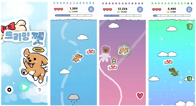 귀여운 BGM과 아기자기한 우주 배경 속에서 장애물에 부딪히지 않게 강아지를 조종하며 최대한 오래 내려가 보세요!