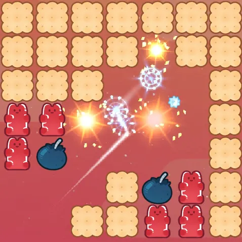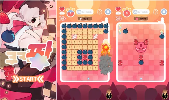신선한 경험 : <쿠키팡>의 각 스테이지는 쿠키 부수기 모드, 구멍에 공 넣기 모드, 버튼 누르기 모드, 마카롱 부수기 모드 등 총 6개의 모드 중 하나로 구성이 되어 있습니다. 또한 젤리 블록, 폭탄 블록, 독극물 블록 등 다양한 특수 기믹들을 사용하여 각 스테이지를 마치 하나의 복잡한 퍼즐처럼 만들었습니다. 이에 따라 플레이어는 게임을 하면서 매번 새로운 클리어 목표를 제공받고, 기믹을 이용한 퍼즐을 풀어나가며 매 판 신선하고 재밌는 경험을 할 수 있습니다.