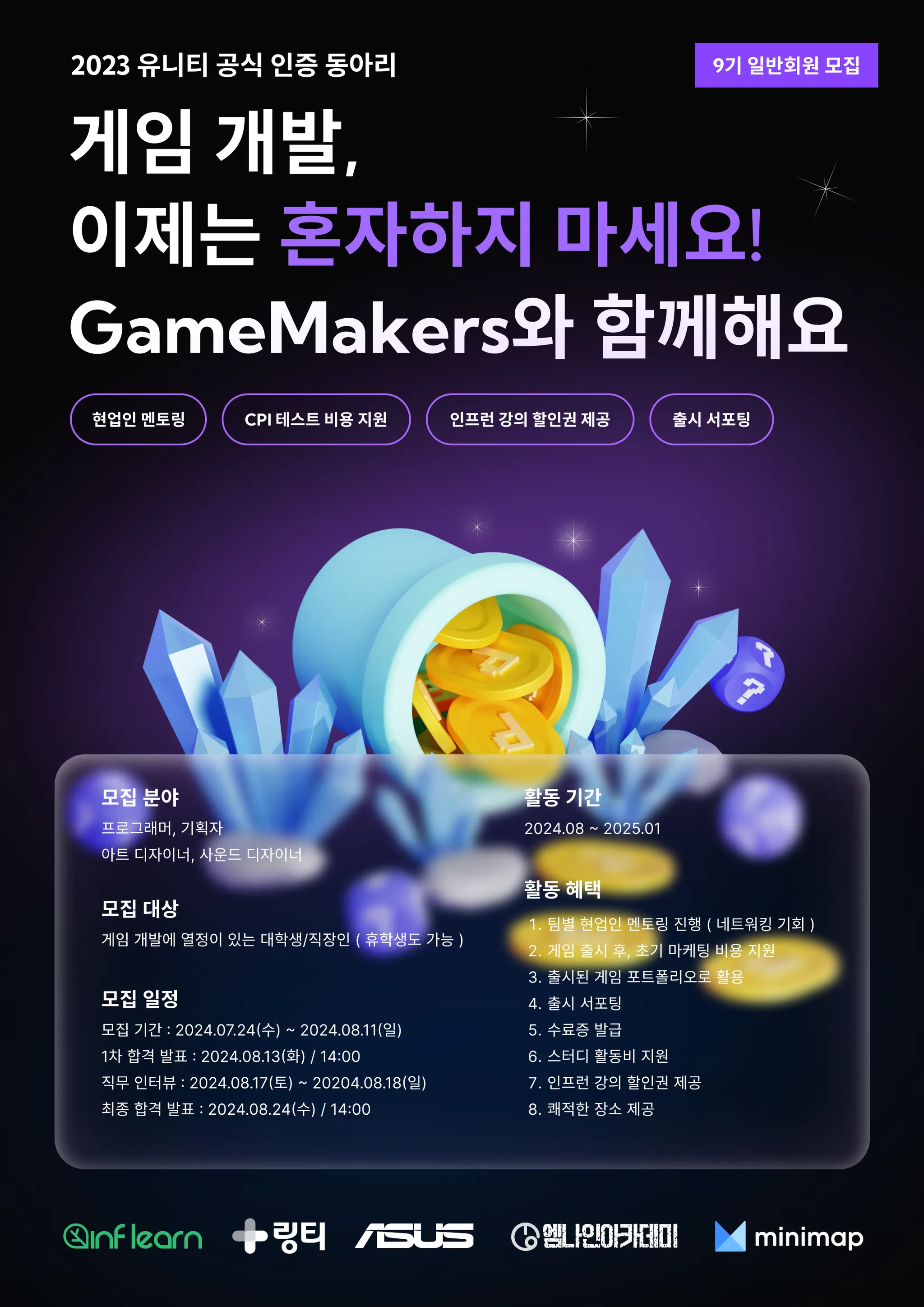 일반회원 모집 분야 : 프로그래머, 아트 디자이너, 기획자, 사운드 디자이너